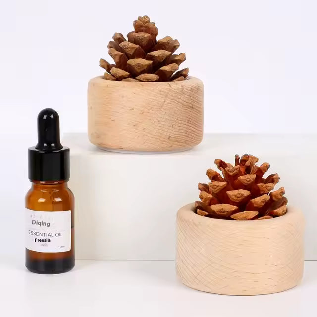 Transform any space into a calming retreat with our Natural Pine Cone Essential Oil Diffuser. Carefully crafted from real pine cones and smooth natural wood, this diffuser adds a rustic elegance to your decor while infusing the air with your favorite scents.