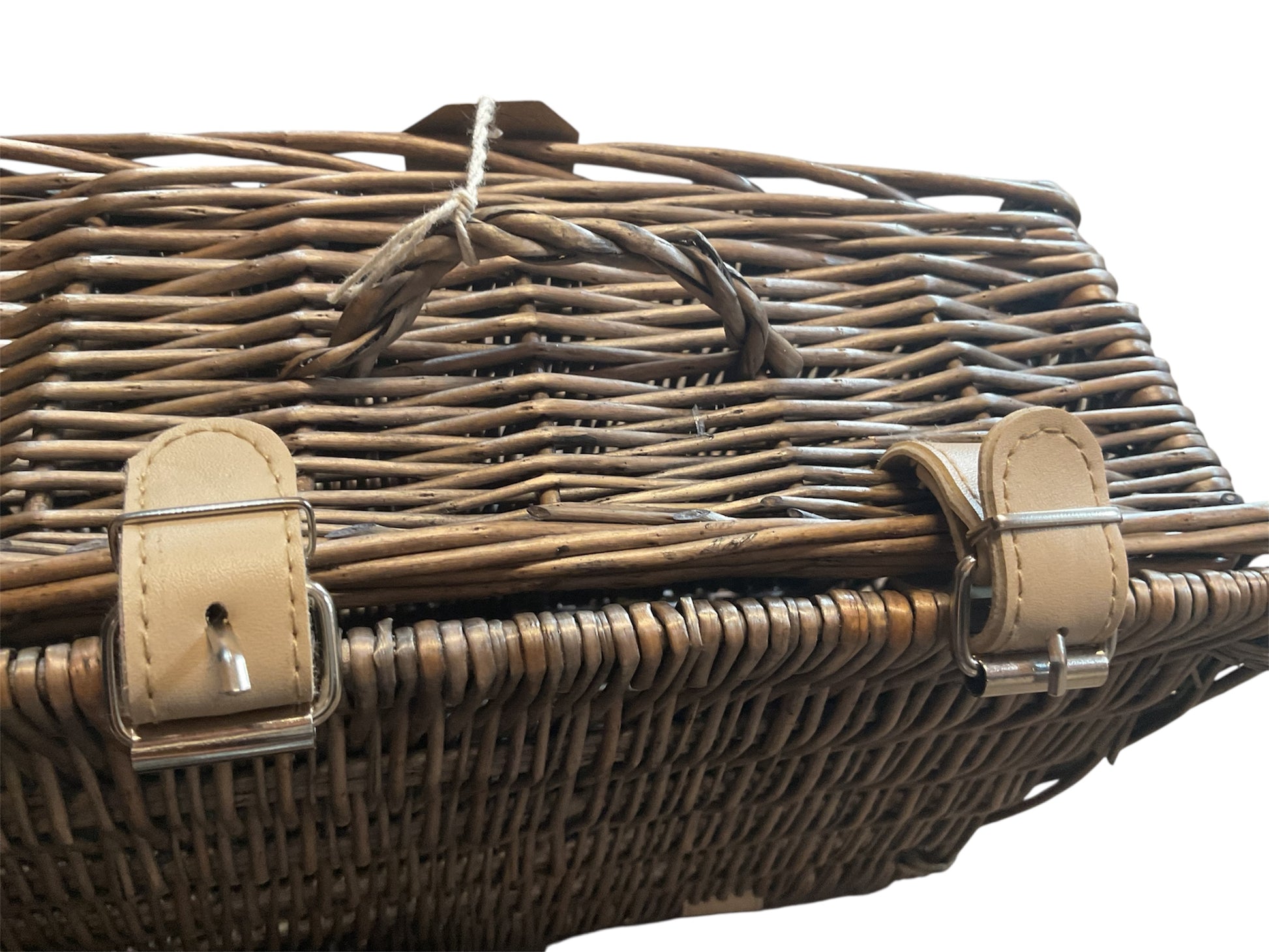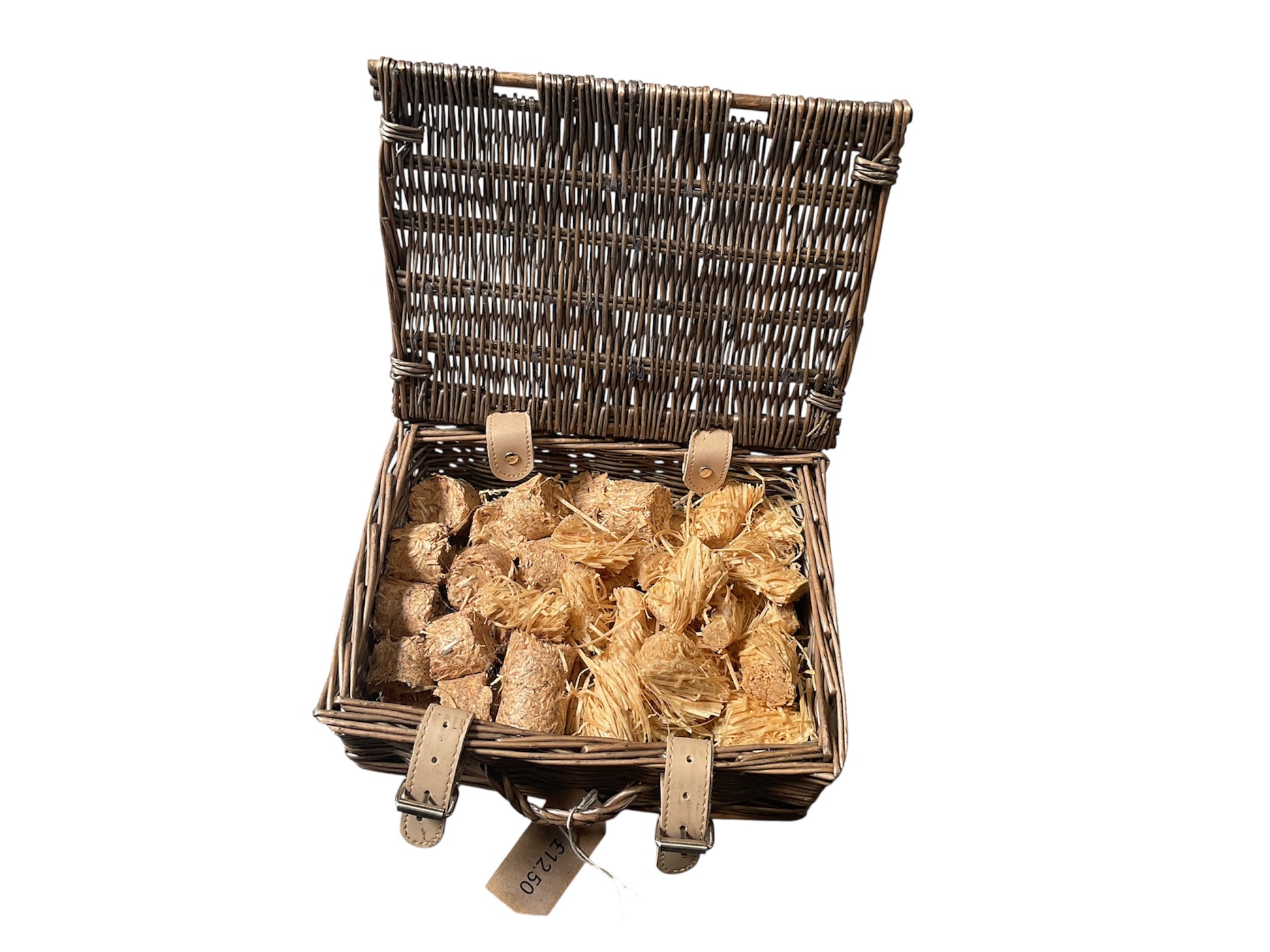 Small lidded wicker basket with faux leather hinges and straps that add a touch of luxury to its design. Perfect for firefighters and kindling. By choosing this basket you are not only investing in a beautiful piece for your home, but also the perfect storage solution for your firefighters and kindling.