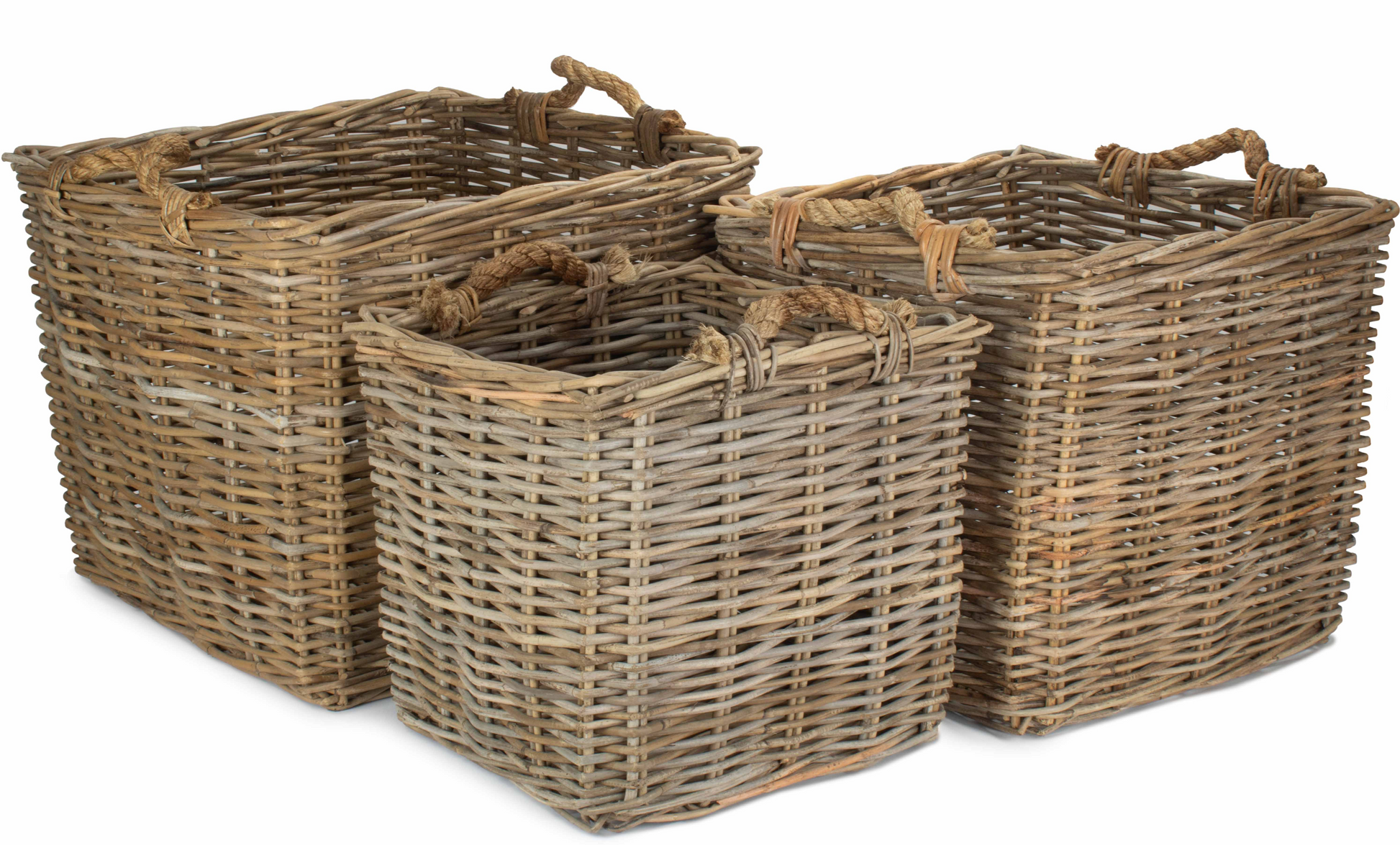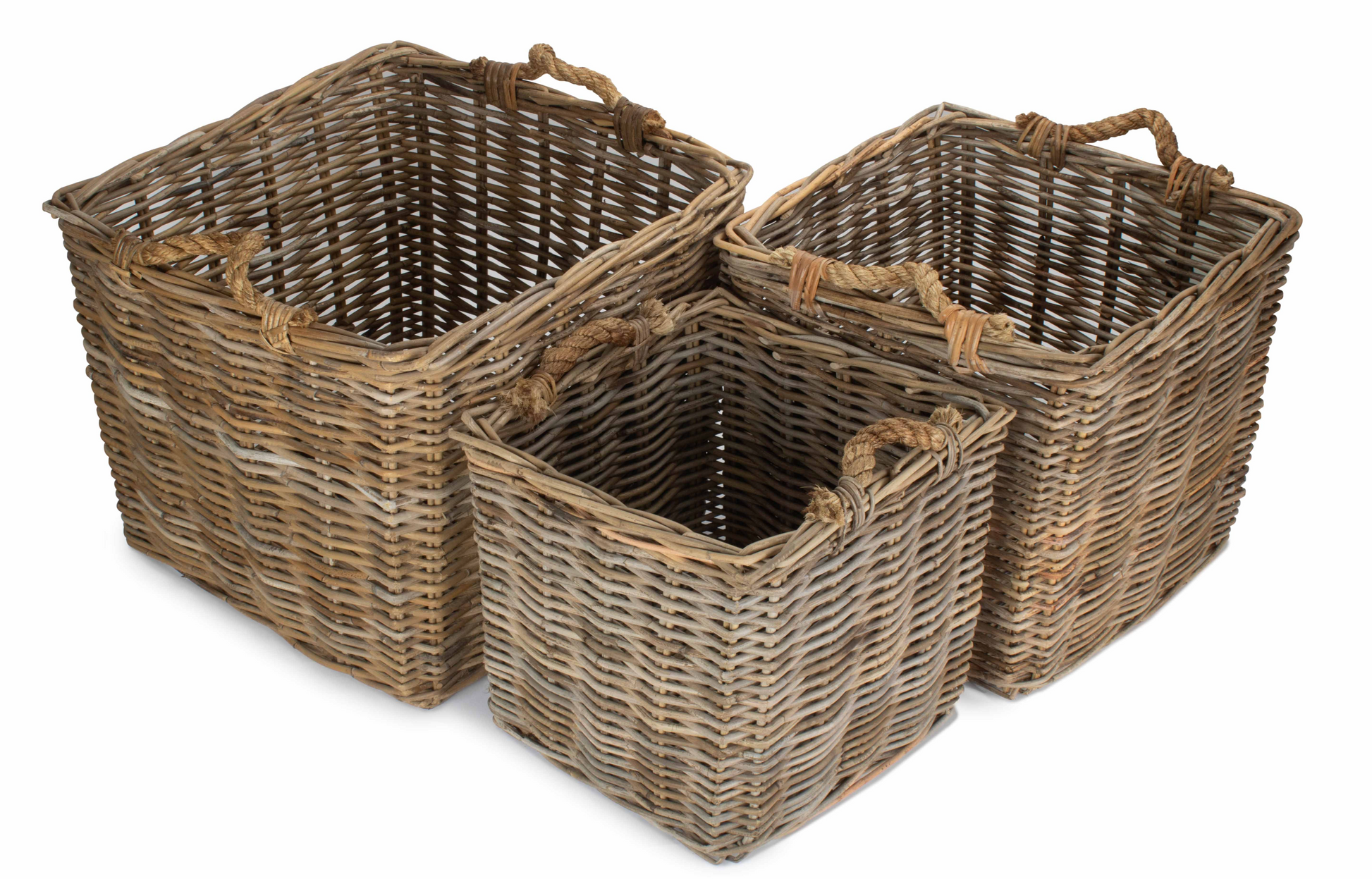 Square Grey Rattan Log Basket Set 3